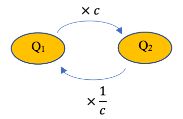 Le coefficient multiplicateur réciproque $c’$ vaut : $c = \frac{1}{c} $.