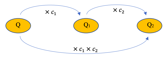 Lorsqu’une quantité Q subit plusieurs évolutions successives (augmentations et/ou diminutions), alors le